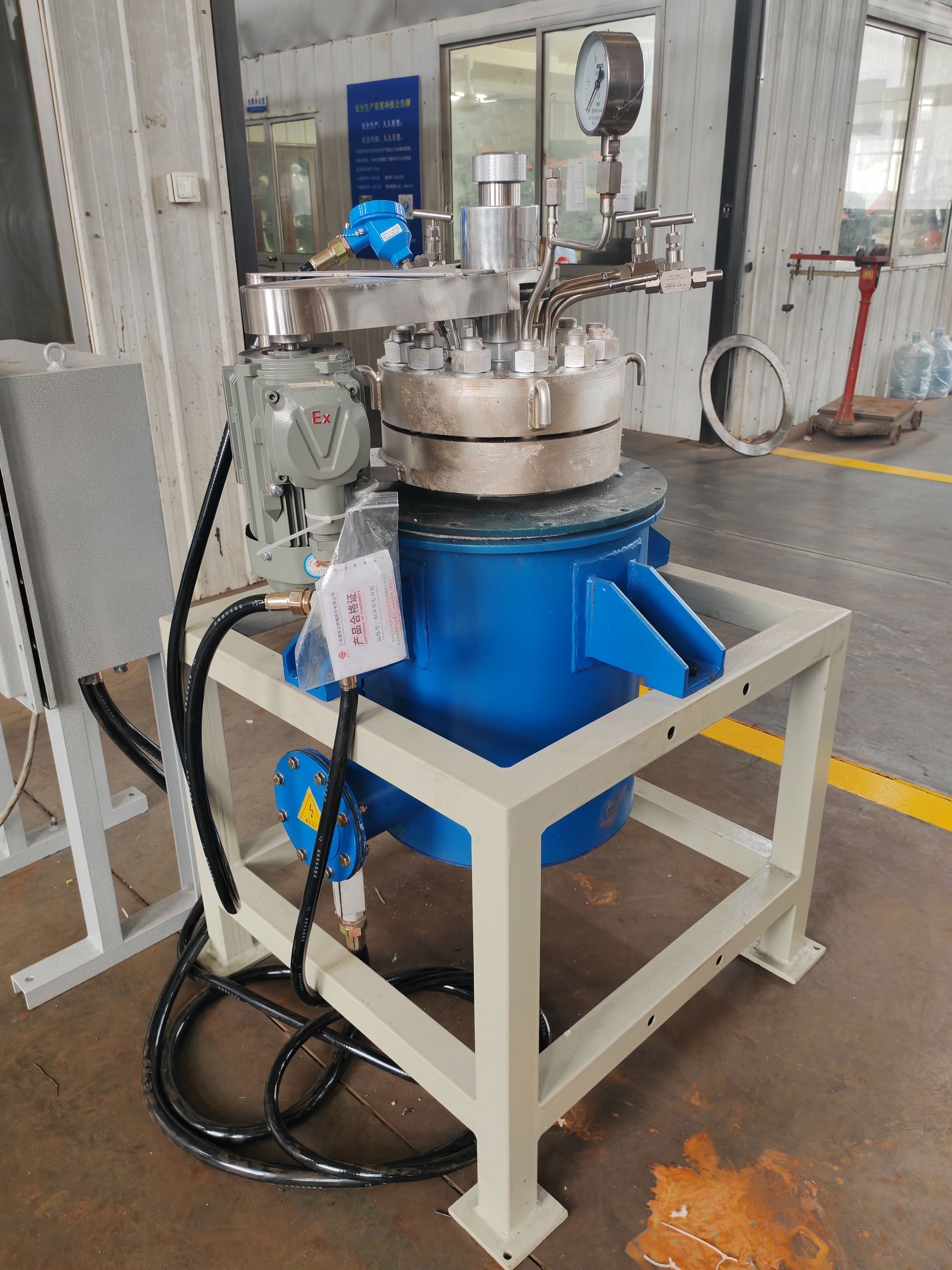 10L高溫高壓不銹鋼手動吊桿升降實驗釜已完工發(fā)往廈門客戶處