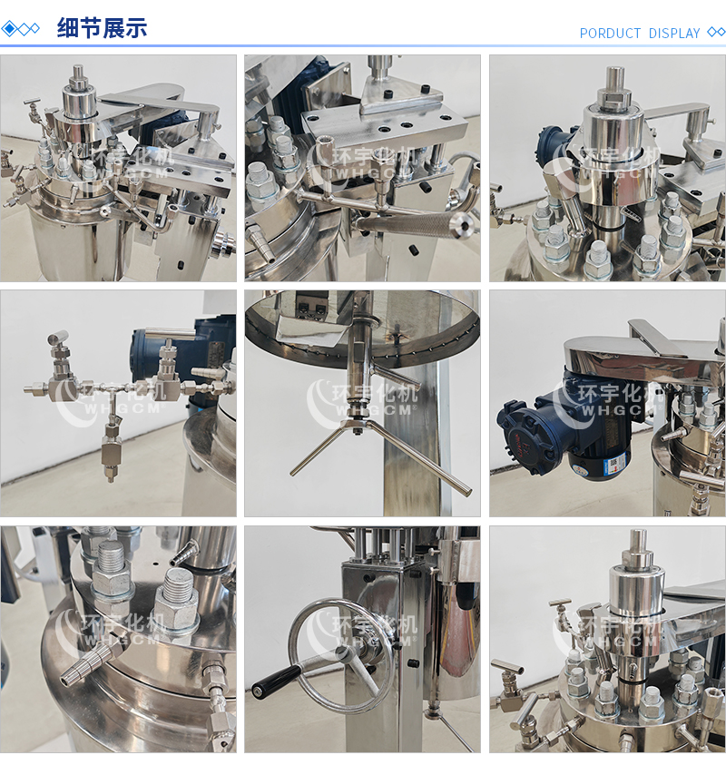 其他附件 如果用戶在釜蓋、釜體開口、內部結構、壓力高低、攪拌槳葉、及增加其他輔助裝置(如冷凝回流裝置、冷凝器、恒壓加料罐、接收裝置)等有特殊要求,可完全按用戶的要求加工制造